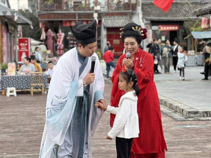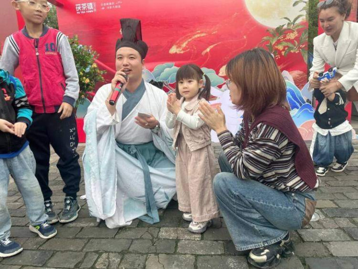 茯茶镇,不仅有热闹,更有雅致。五福广场上“互动对诗”活动温情开启,游客们可以对诗、接力续诗,无论是出口成章的文人雅士,还是稚嫩可爱的孩童,都能参与其中。