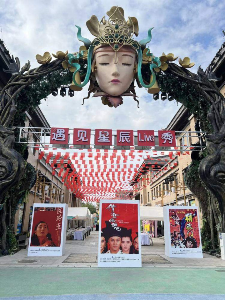 “光影驻唱”在金茯城广场开启,驻唱歌手抱着吉他,唱起经典的电影歌曲,与电影海报相呼应,感受怀旧与浪漫。当经典爱国歌曲响起,游客们同声歌唱祖国。